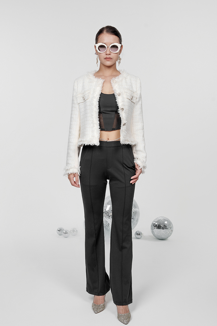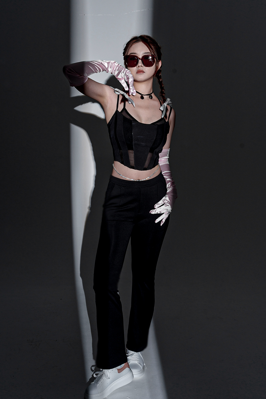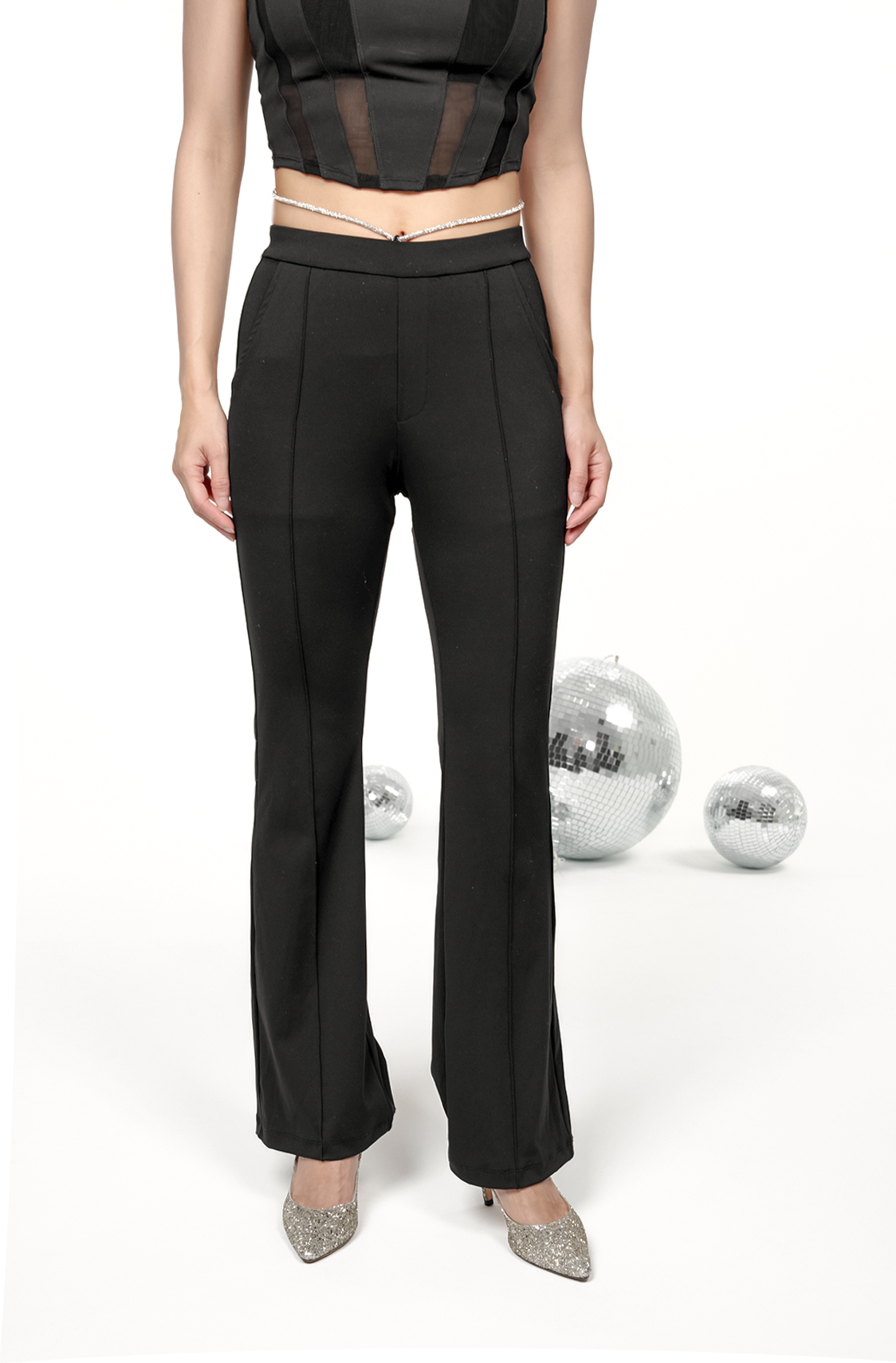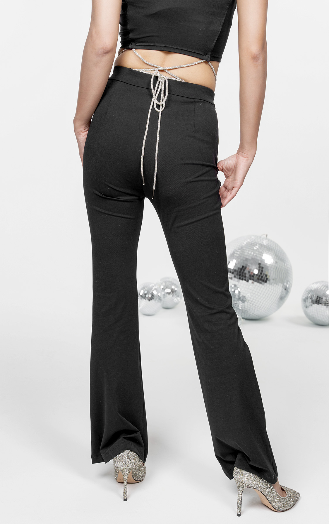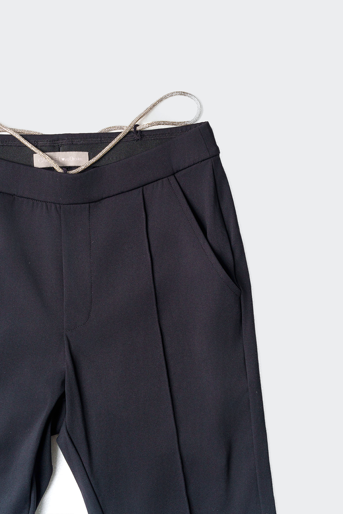 This dress-look pant is made of stretchy sport material for performance support. It is dressy but perfect for everyday comfort and exercise. With a detachable sparkle strap to complete your “Glam” Look from day to night.
