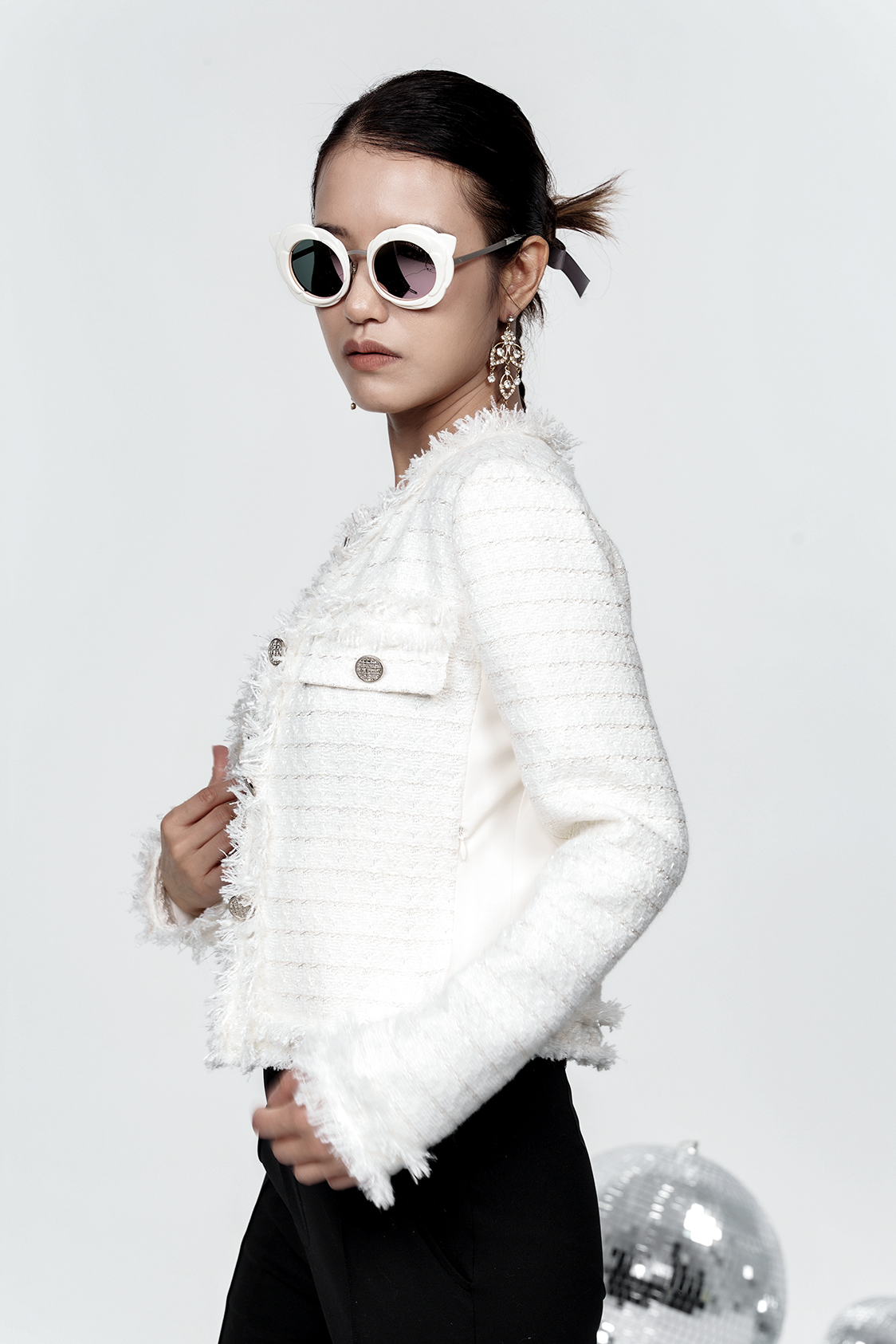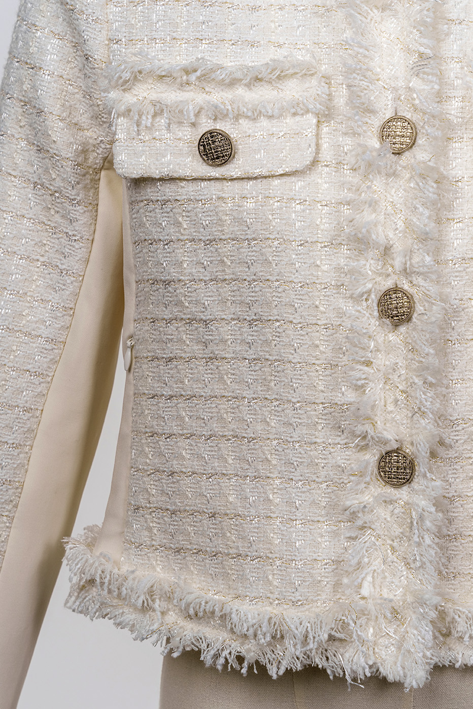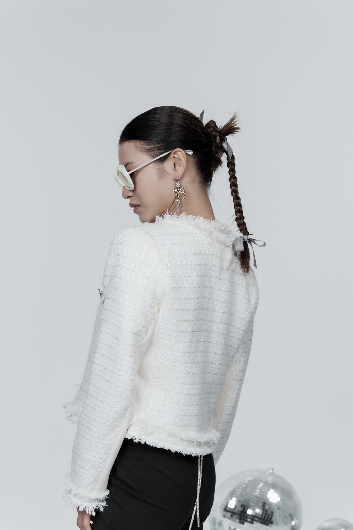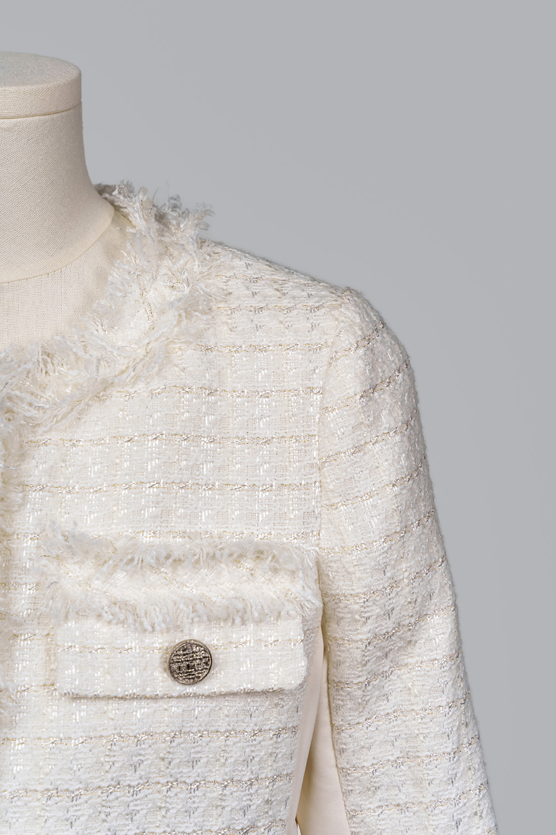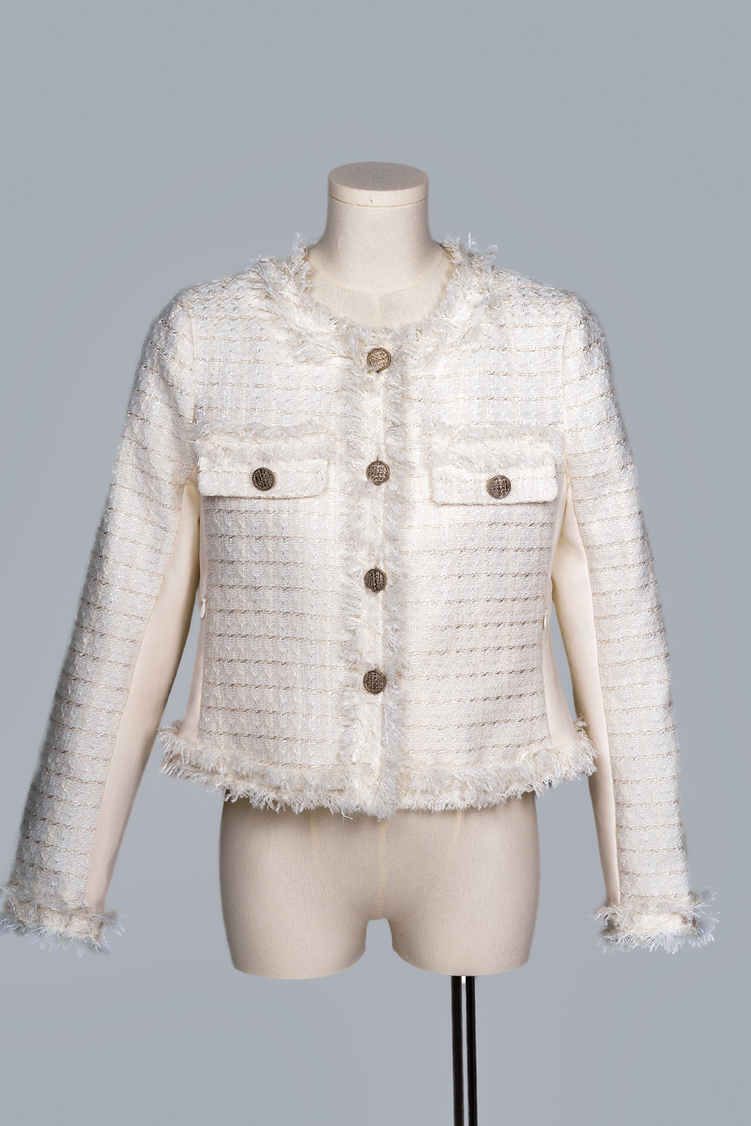 Frayed Edge Tweed Jacket with mixed material – JK001
