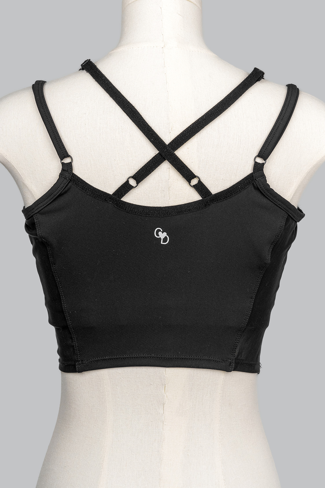 This corset inspired tank top is all made of stretchy sporty fabric for performance support and semi see-through mesh panels, which creates a lift for a sexy and slim look. The double shoulder straps & cross back detail enhance the push up effect. All cut seams have plastic tape within to replace boning to give support & flexibility at the same time. Pads are included with both push-up and light styles.