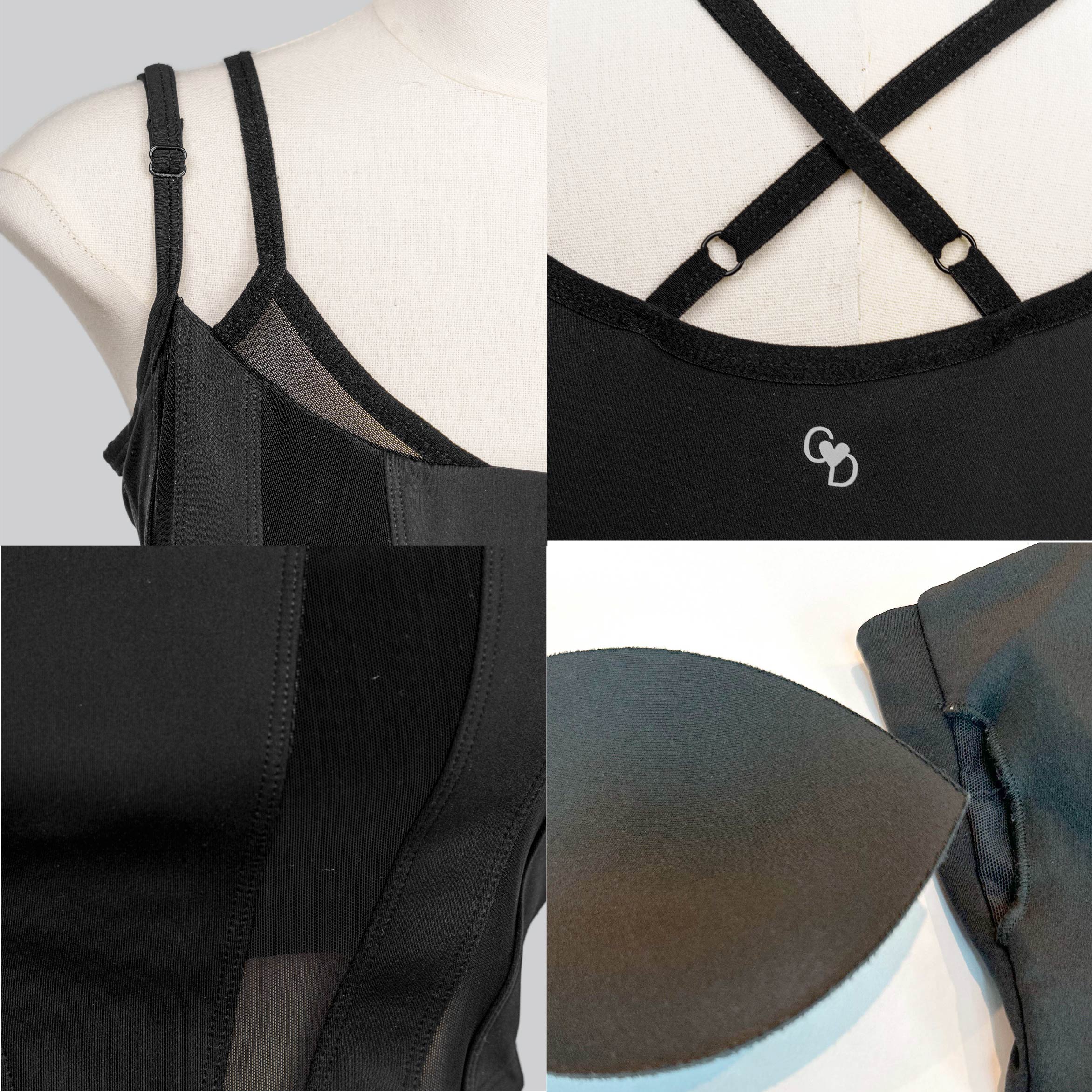 – Removable padded cups (provide extra pair exchange)